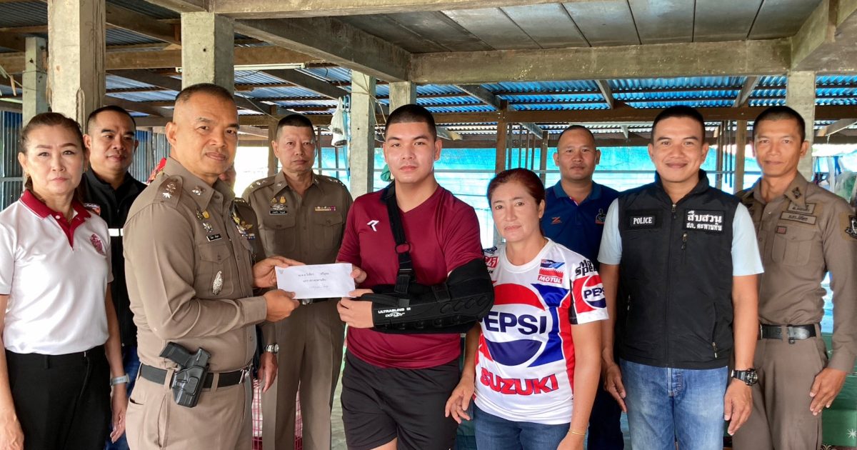11 ก.ค.66เวลา 09.30 น. พ.ต.อ.วิเชียร ตรีอุดม ผกก.สภ.ตะพานหิน,พ.ต.ท.สมบุญ อิ่มเกิด รอง ผกก.ป.ฯ,พ.ต.ท.ประทีป ไพบูลย์ รอง ผกก.สอบสวน,พ.ต.ท.สุเทพ อุดมรักษ์ สว.สส.ฯ พร้อมด้วยเจ้าหน้าที่ตำรวจทุกสายงานได้เดินทางไปเยี่ยม ส.ต.ท.กิตติพงษ์ ยมจันทร์ ซึ่งได้รับบาดเจ็บจากการฝึกอบรมยุทธวิธีการเผชิญเหตุ และการใช้ปืน Taser Gun x2 โดยมอบเงินเพื่อเป็นค่าใช้จ่ายในการรักษาและบำรุงขวัญกำลังใจ ณ บ้านพักของ ส.ต.ท.กิตติพังษ์ฯ ต.ทับหมัน อ.ตะพานหิน จ.พิจิตร