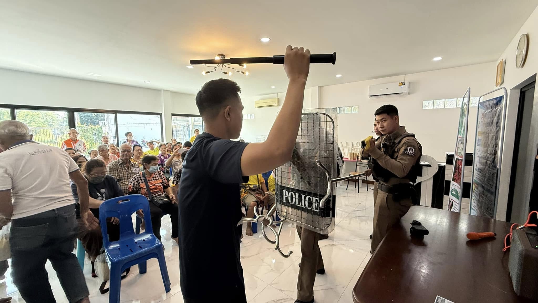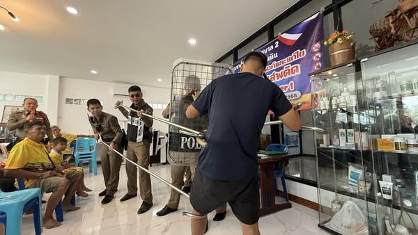 11 ก.พ.68 เวลา 10.00 น. ภายใต้การอำนวยการโดย พ.ต.อ.พีรชาติ ป้อมบุญมี ผกก.สภ.ตะพานหิน จว.พิจิตร ควบคุมการปฏิบัติโดย พ.ต.ท.สมบุญ อิ่มเกิด รอง ผกก.ป.สภ.ตะพานหิน จว.พิจิตร ได้สั่งการให้ ร.ต.อ.พรหมลิขิต เมืองพรหม รอง สวป.ฯ พร้อมชุดสายตรวจ สภ.ตะพานหิน เป็นวิทยากรบรรยาย ให้ความรู้ยุทธวิธีตำรวจในการควบคุมบุคคลคลุ้มคลั่ง (ใช้ไม้ง่าม) ณ บ้านประธานชุมชนโรงเรียนเทศบาล2 ถนนพร้อมใจ ตำบลตะพานหิน อำเภอตะพานหิน จังหวัดพิจิตร